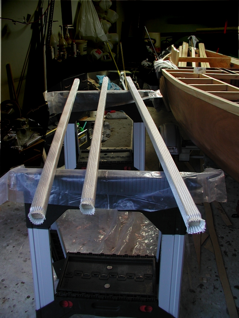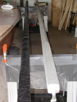 All 3 spars are glassed and ready for the epoxy. Note how smoothly the sleeving