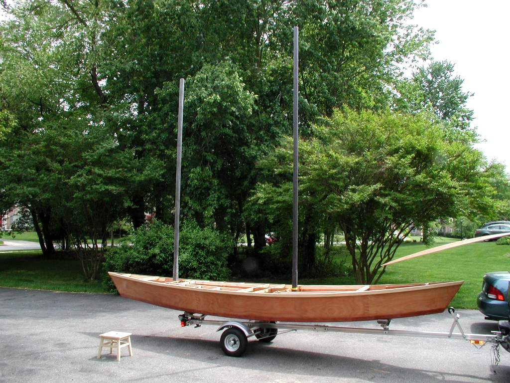trailer backwards. Since there are no mast partners yet, the masts are held