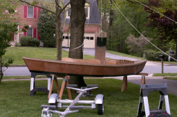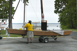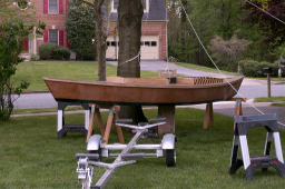 was made fast to the keel, the other to the trailer hitch on my truck. By moving the truck