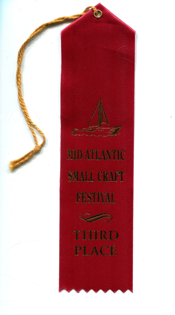 And how did the judging go? Puzzled Mullet was entered in the contemporary design category. Did the natural finish, decked sailing canoe look with tanbark sails work? Were the judges impressed by the wood accents, the handmade carbon fiber spars and the puzzle joints? Click on the "?" to find out. |