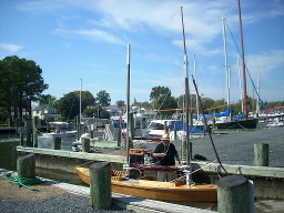 We arrived after sunset and as we were unloading the boats in the dark, we were approached by a gentleman who had recognized Puzzled Mullet as a Bolger Singlehanded Schooner. This was in the dark, with the masts unstepped. Definitely our kind of people.