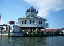 As we sail past the relocated Hooper Strait lighthouse on the Museum grounds, my wife is sitting in the hold (which also doubles as the passenger compartment) taking pictures. . |