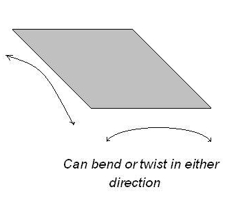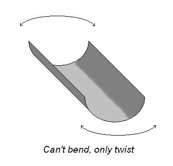 Monocoque structures get their stiffness from pre-stressed skins. Because the skins are already bent in one direction, they cannot bend in any others.